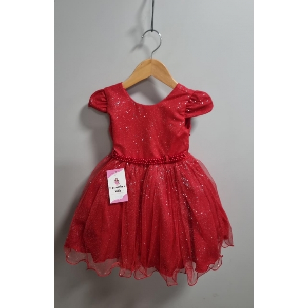Informações do produto: Vestido Infantil Vermelho Cinto de Pérolas Batizado Festas
